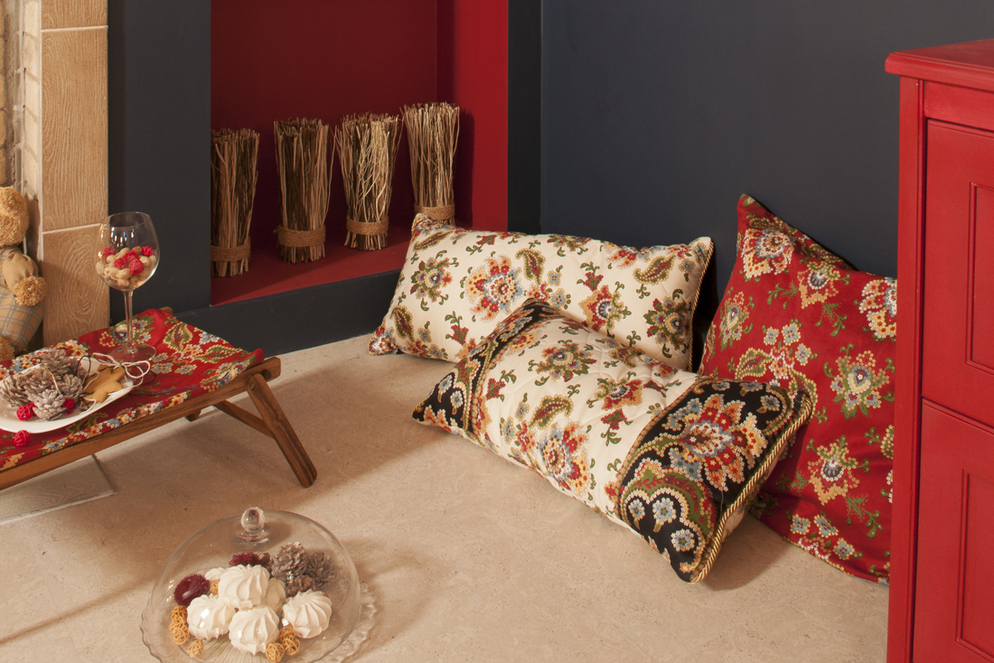 Получилась ровная светлая поверхность, в сочетании с деревянной доской на потолке напоминающая привычный потолок. Здесь использовали замковый пробковый пол, поскольку помещение сухое и теплое. Пробка сделала его еще теплее – ведь она отличный теплоизолятор. В сочетании со светлым полом особенно нарядно выглядят темные стены и яркие детали интерьера. В такой гостиной всегда будет царить праздничное настроение.